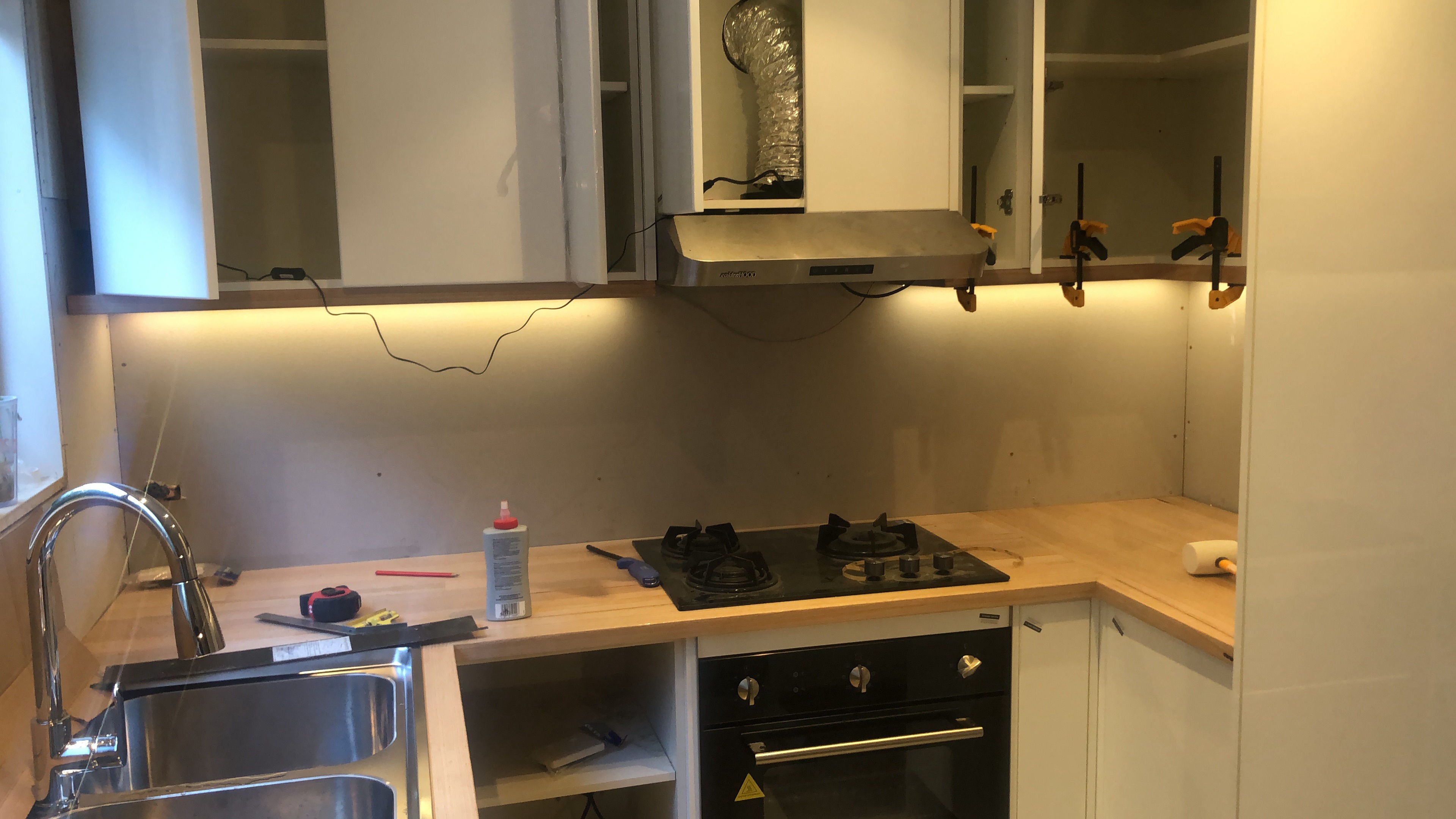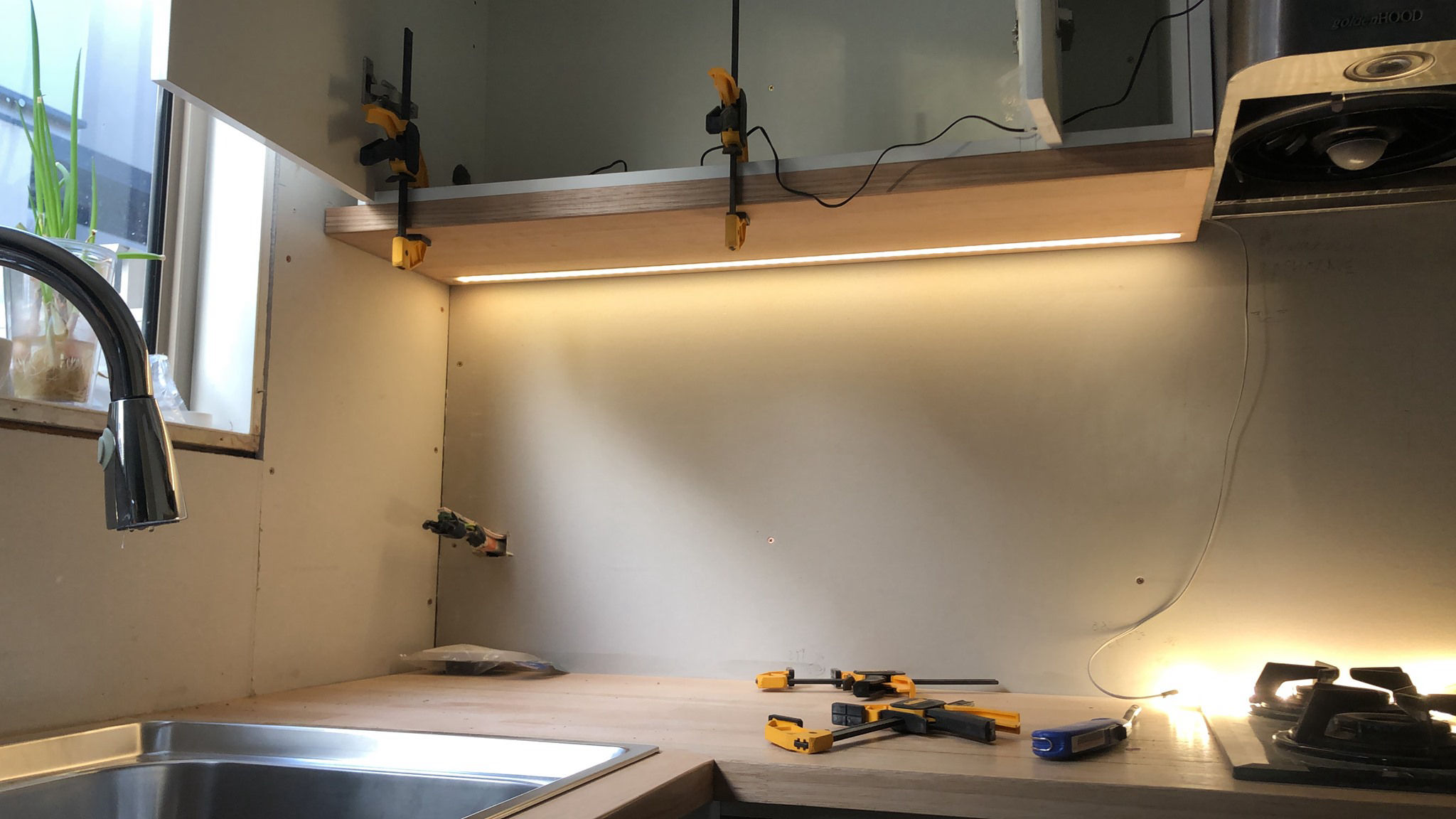 Custom LED strip lighting and diffusers routed into overhead benchtop material (cont)
